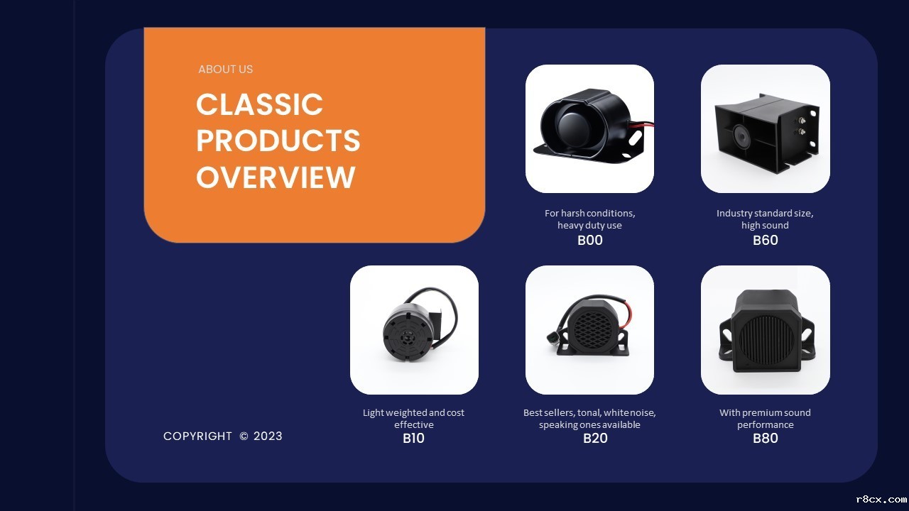 B60报警器系列产品适用于各种大中型车辆/设备,推荐中度及重度噪声区域使用。是工程机械领域使用较多的产品系列。