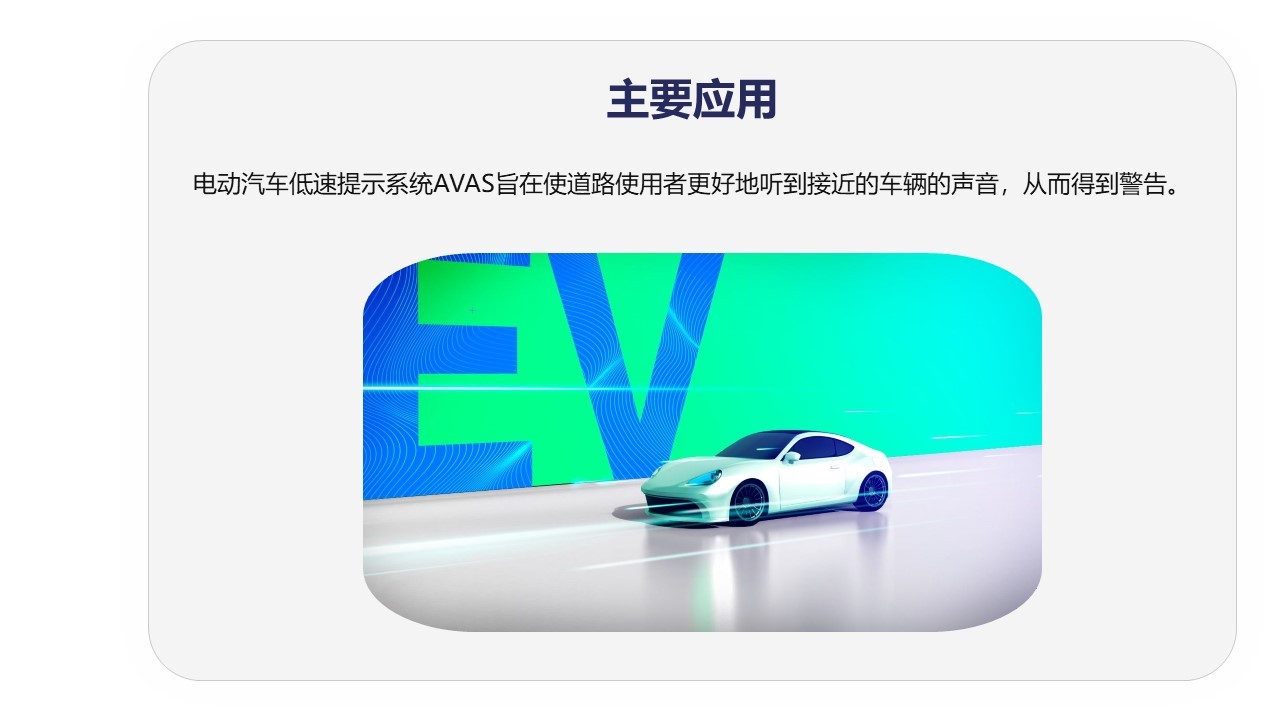 因此,在电动和混合动力汽车中安装AVAS系统已成为政府和相关组织的法律要求。在城市地区,低速行驶时也有必要拉响警报。安装AVAS可以有效地提高交通安quan,并有助于保护行人和其他道路使用者。
